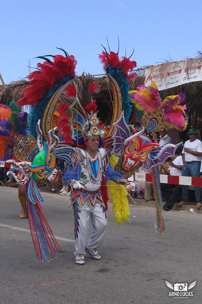 Ik heb in 2007 ook de carnaval op Aruba meegemaakt. Dit is ècht een Caribisch carnaval. De mensen zijn hier prachtig verkleed met vooral veel (opvallende) kleuren.